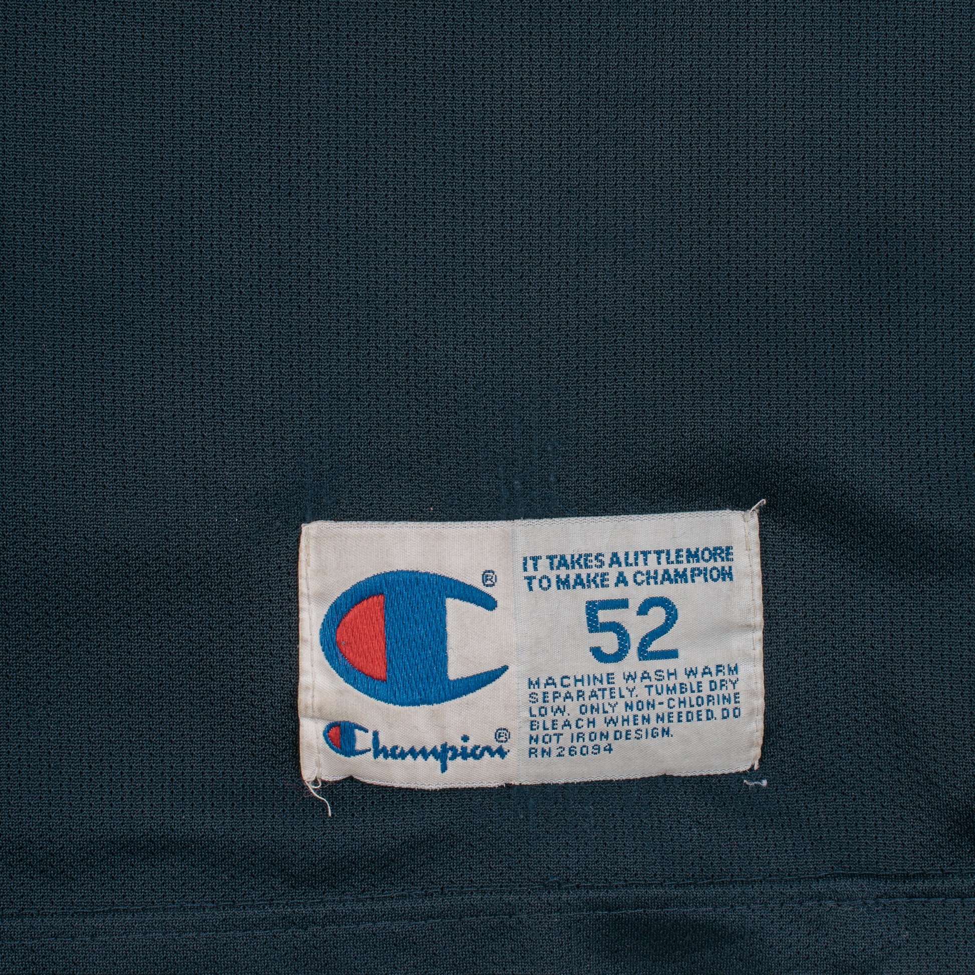 Condition: Fabric and print nicely faded, discoloration/stains on the cuffs, some damage around the jersey