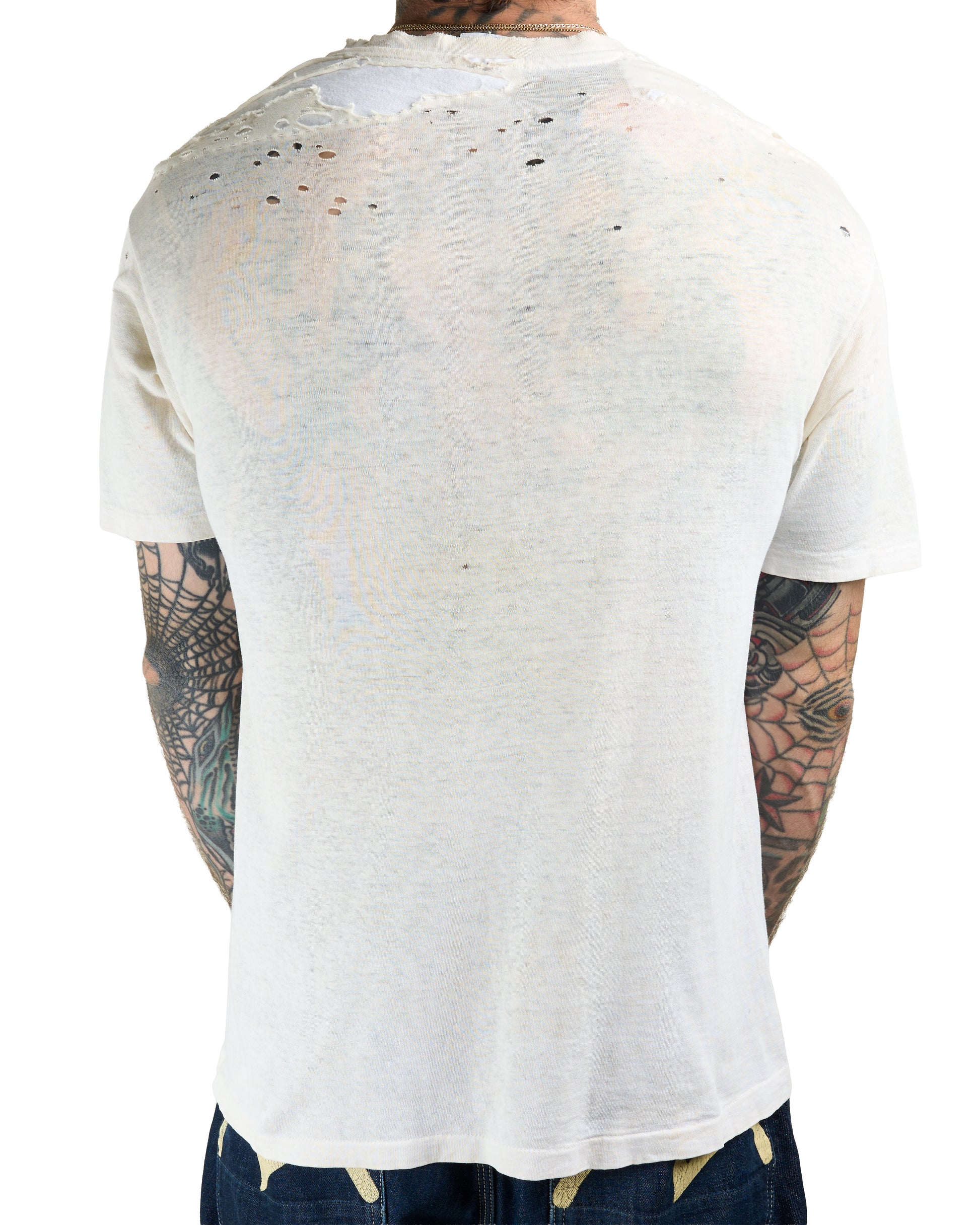 Condition: Holes and repairs all over the shirt, discoloration and stains all over the shirt, collar nicely frayed