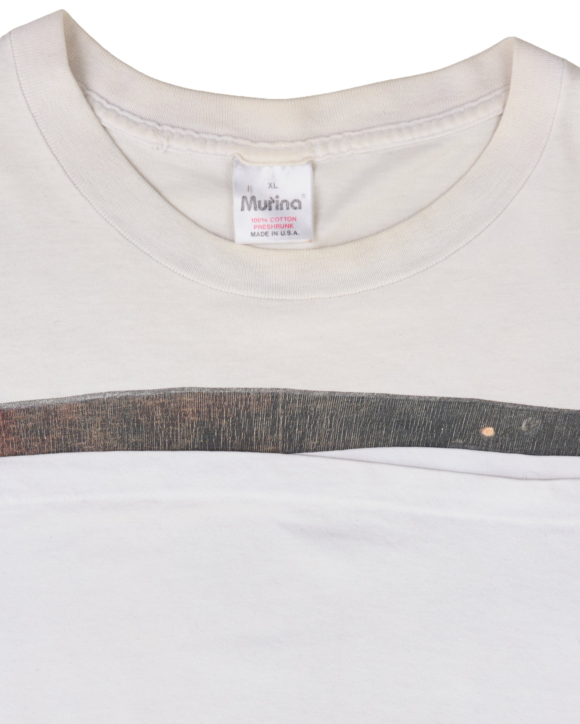 Condition: Some discoloration and pinholes around the shirt, armpit stains