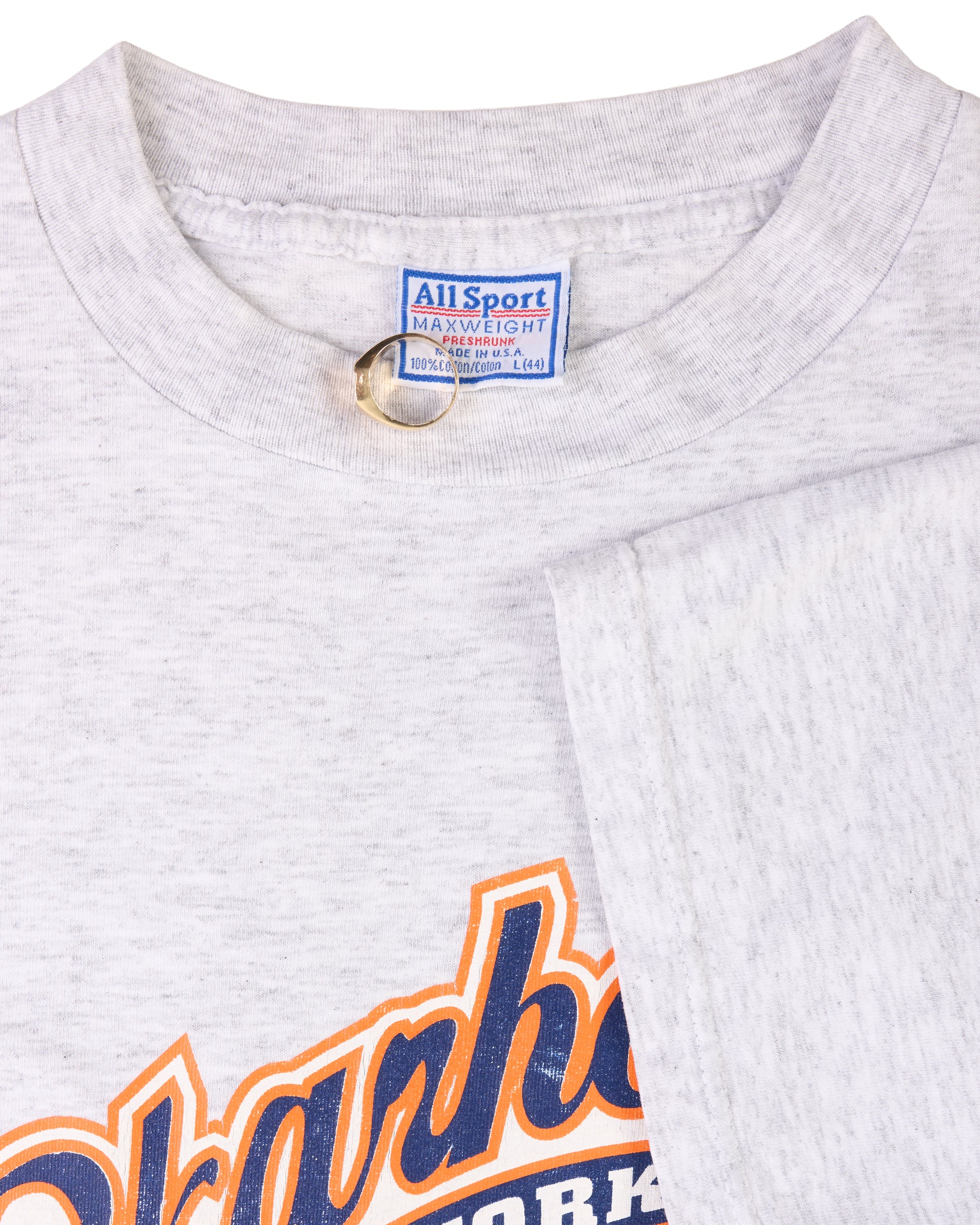 Condition: Some discoloration around the shirt